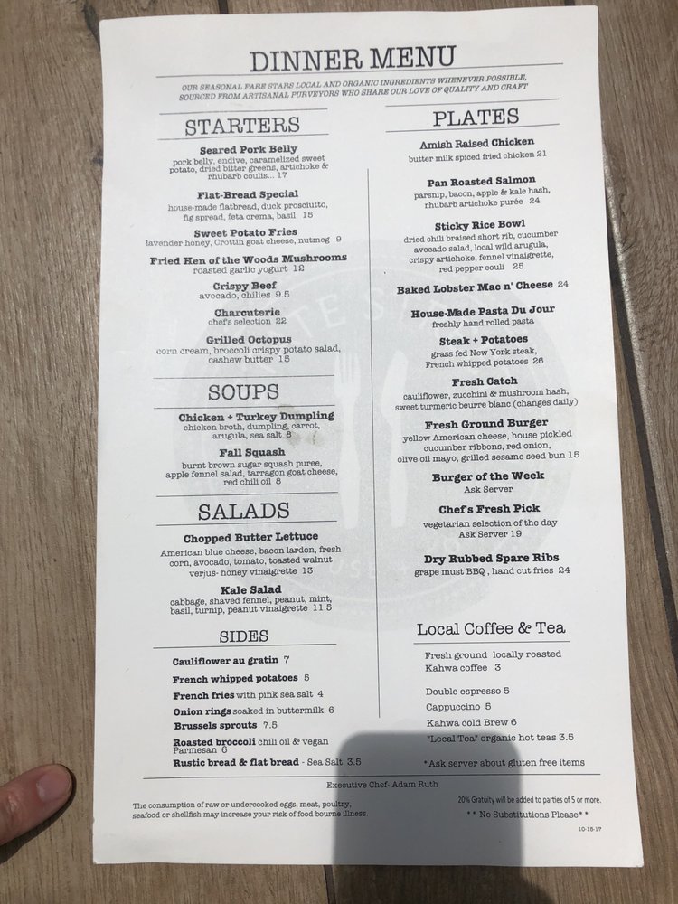 bricks farm’s greens, feta, bacon, fresh corn, avocado, tomato, toasted walnut, honey verjus vinaigrette