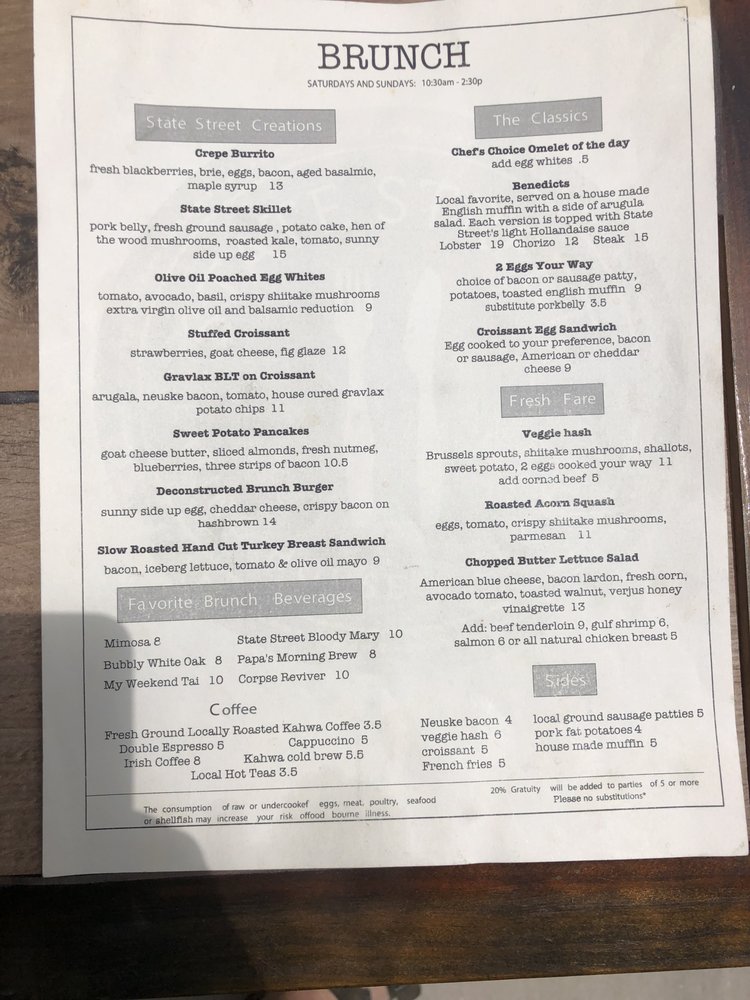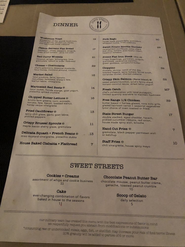 State Street Eating House + Cocktails offers a trendy and classy dining experience in Sarasota, FL. With a wide range of vegan and vegetarian options, this cocktail bar and New American restaurant caters to various dietary preferences. The menu boasts creative and delicious dishes, from the highly recommended Iberico pork to the flavorful crispy salmon. The attentive service, knowledgeable staff, and welcoming atmosphere make every visit memorable. The cocktails, while average according to some, still offer a decent selection to complement the exquisite food choices. Whether you're looking for a laid-back evening or a vibrant night out, State Street Eating House + Cocktails delivers on quality and taste. Don't miss out on their must-try dishes like the fried Brussel sprouts or the burger that has impressed many diners. Overall, this restaurant stands out as a top choice for a unique dining experience in Sarasota.